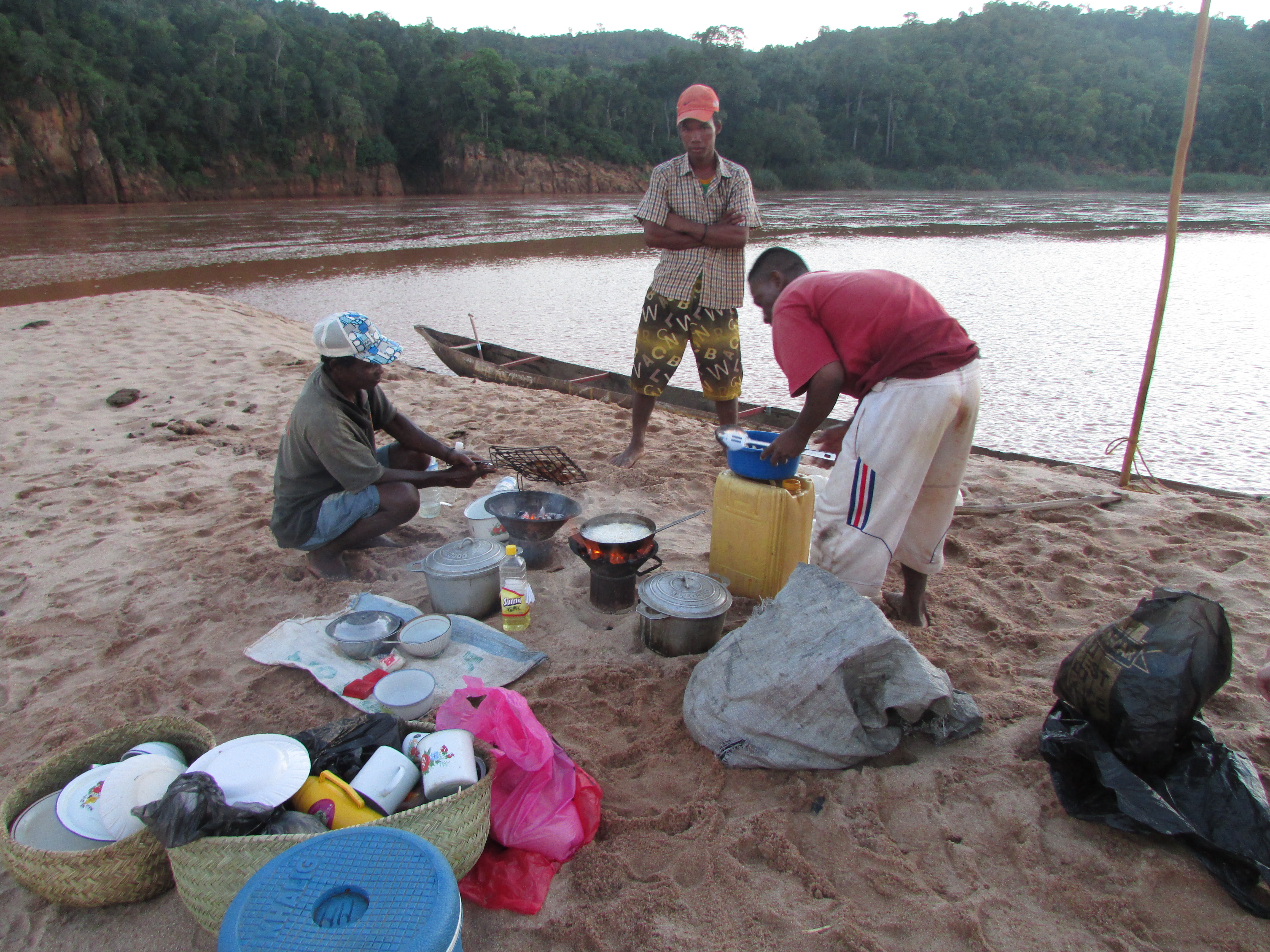 Unser Tag endete schließlich auf einer Sandbank. Und da erkannten wir auch, warum es mittags ruhiger war. Unser Hühnchen hatte in der Mittagszeit den Weg ins Licht angetreten und wurde gerade auf dem Mini-Kohlegrill zur Barbecue-Hauptattraktion. (Wir hätten ja lieber den Hahn aus dem Dorf dort gesehen…)